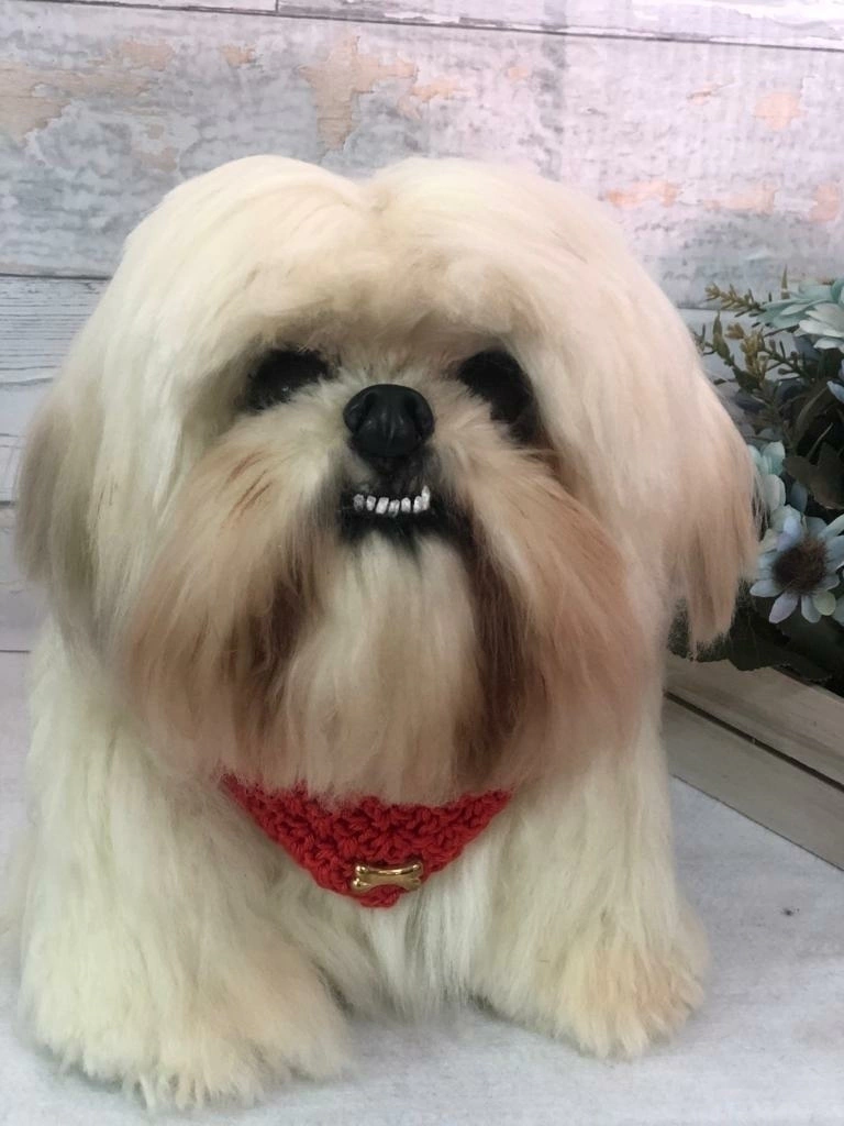OBSERVAÇÃO: Cada trabalho é único, criado com diferentes técnicas para ficar o mais parecido possível com o seu pet. Na grande maioria das peças é aplicada feltragem para esconder o crochê, que não pode ser puxada, sob o risco de danificar. Indicadas somente para decoração. A beleza e a durabilidade da peça depende exclusivamente dos cuidados despendidos.